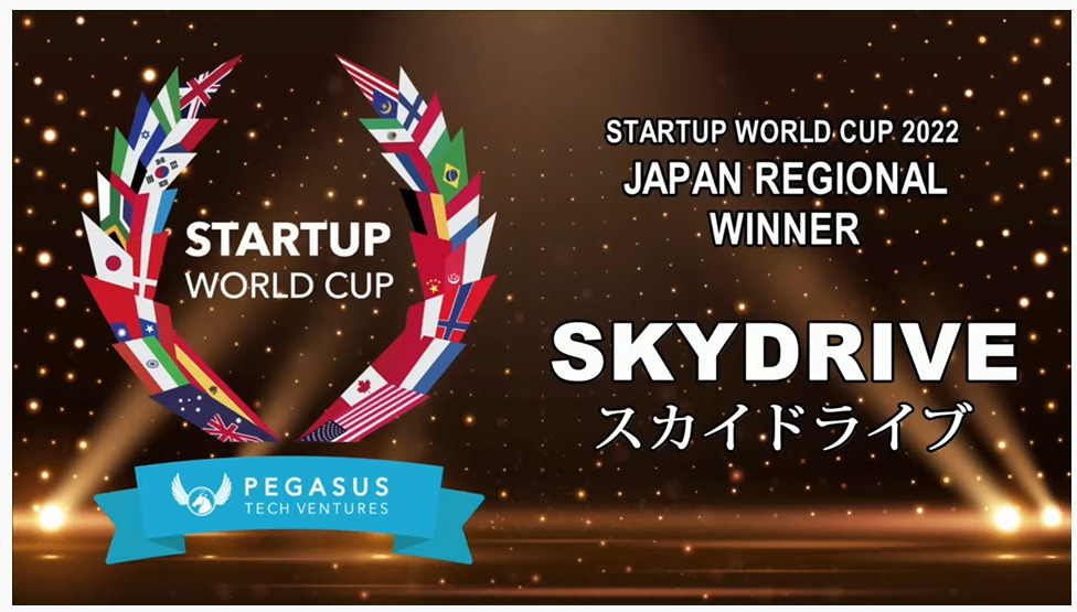 「空飛ぶクルマ」(※1)および「物流ドローン」を開発する株式会社SkyDrive(本社:愛知県豊田市、代表取締役CEO  福澤知浩、以下「当社」)は、米国シリコンバレーを拠点にグローバルに投資活動を展開するペガサス・テック・ベンチャーズ(本社:米国カリフォルニア州、代表パートナー兼CEO アニス・ウッザマン)(※2)が主催する、70以上の国と地域から革新的なベンチャー企業が集まる、世界最大級のスタートアップピッチコンテスト「スタートアップワールドカップ2022」日本予選(https://www.startupworldcup.io/tokyo-regional-2022)で優勝したことをお知らせいたします。2022年9月にサンフランシスコで開催される世界大会(https://www.startupworldcup.io/home)にて優勝を目指します。