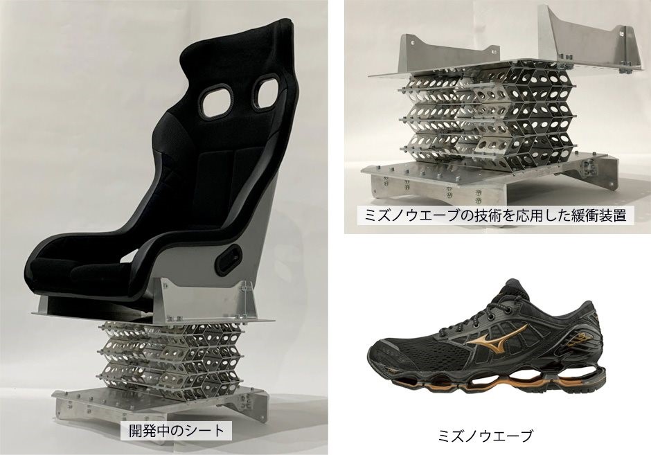 支援内容:シートベルト、エアバック、チャイルドシート等の開発を進め、1世紀以上にわたり自動車の安全分野を開拓してきた、自動車安全分野のグローバルリーダーである、ジョイソン・セイフティ・システムズ・ジャパン株式会社と、スポーツ品メーカーであるミズノ株式会社がシューズのクッション性と安定性を両立させるためソール部分の基幹機能として用いる独自波形プレート『ミズノウエーブ』の技術を応用し、軽量高性能な「衝撃緩衝装置が内蔵されたシート」の共同開発。
