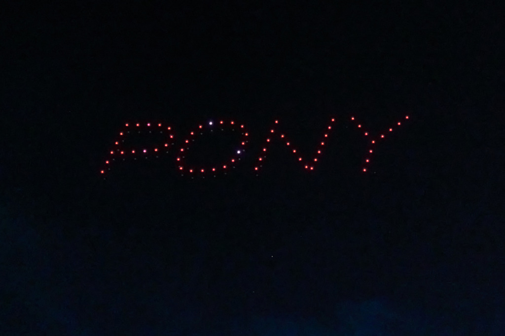 本演出は、アメリカ発祥の世界的中学生硬式野球リーグ「PONYリーグ」の日本公式大会において、初めて導入されたドローンショーです。大会開幕前夜に行われた開会式セレモニーでは、ライト側の夜空に浮かぶ100機のドローンが、野球ボールやバット、大会ロゴなどを描きました。全国124チームの選手たちを迎えるこの演出には、これから始まる熱い戦いを前に、全ての球児たちへのエールが込められています。
