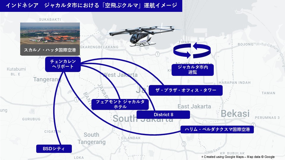 当社とWhiteskyは、2028年度までに、ジャカルタ市中心部での遊覧サービスの運航開始を想定しています。拡張性のある運航体制を整えるため、Whiteskyは、インドネシアの複雑な地理的・産業的条件に適したハブ・アンド・スポーク方式のインフラ整備を行います。このインフラ整備により、空飛ぶクルマの、安全で効率的かつ拡張性のある運航が全国規模で可能になり、インドネシアでの次世代エアモビリティの土台を築いていきます。