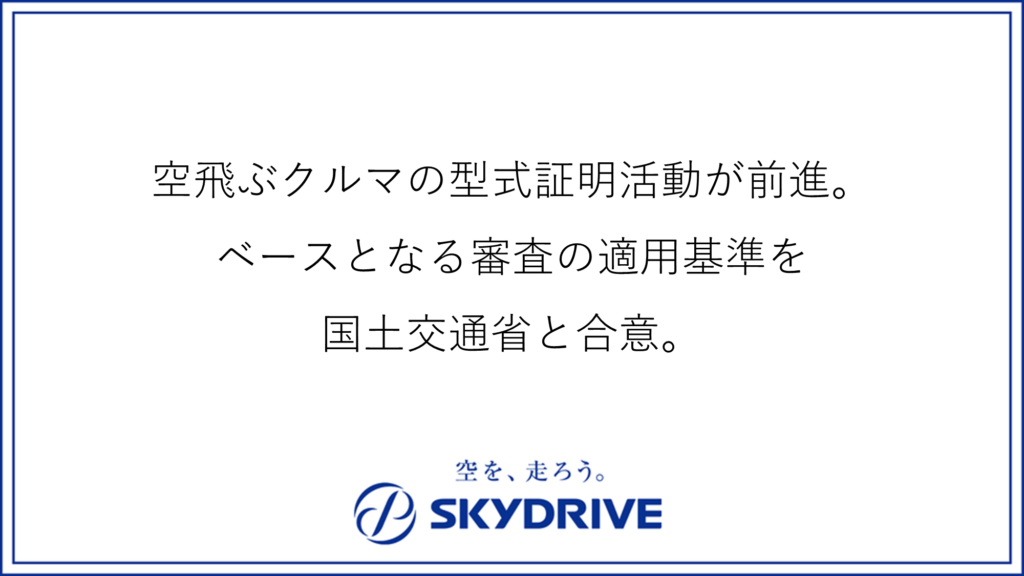 「空飛ぶクルマ」(※1)および「物流ドローン」を開発する株式会社SkyDrive(本社:愛知県豊田市、代表取締役CEO 福澤知浩、以下「当社」)は、型式証明審査の適用基準(Certification Basis)(※2)