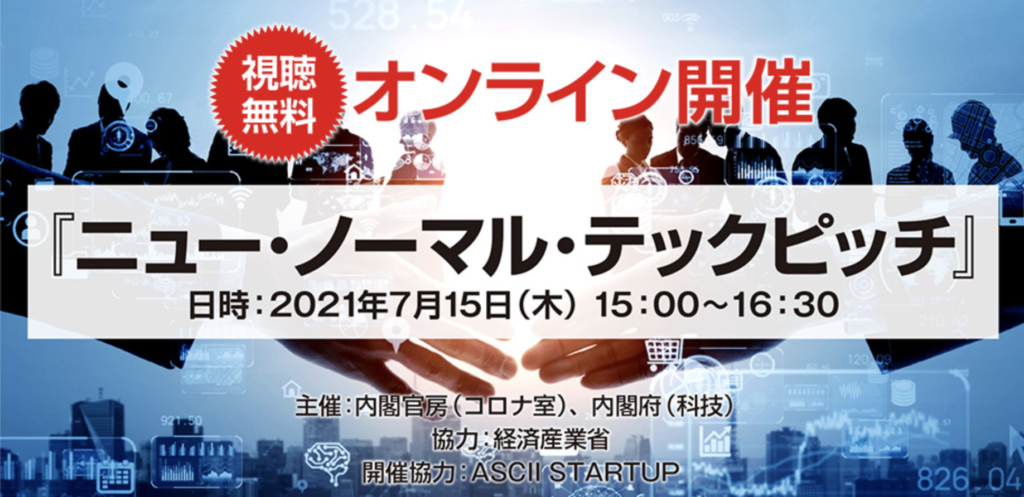 7/15(木)、内閣府主催の『ニュー・ノーマル・テックピッチ』に登壇いたします。 Read More »