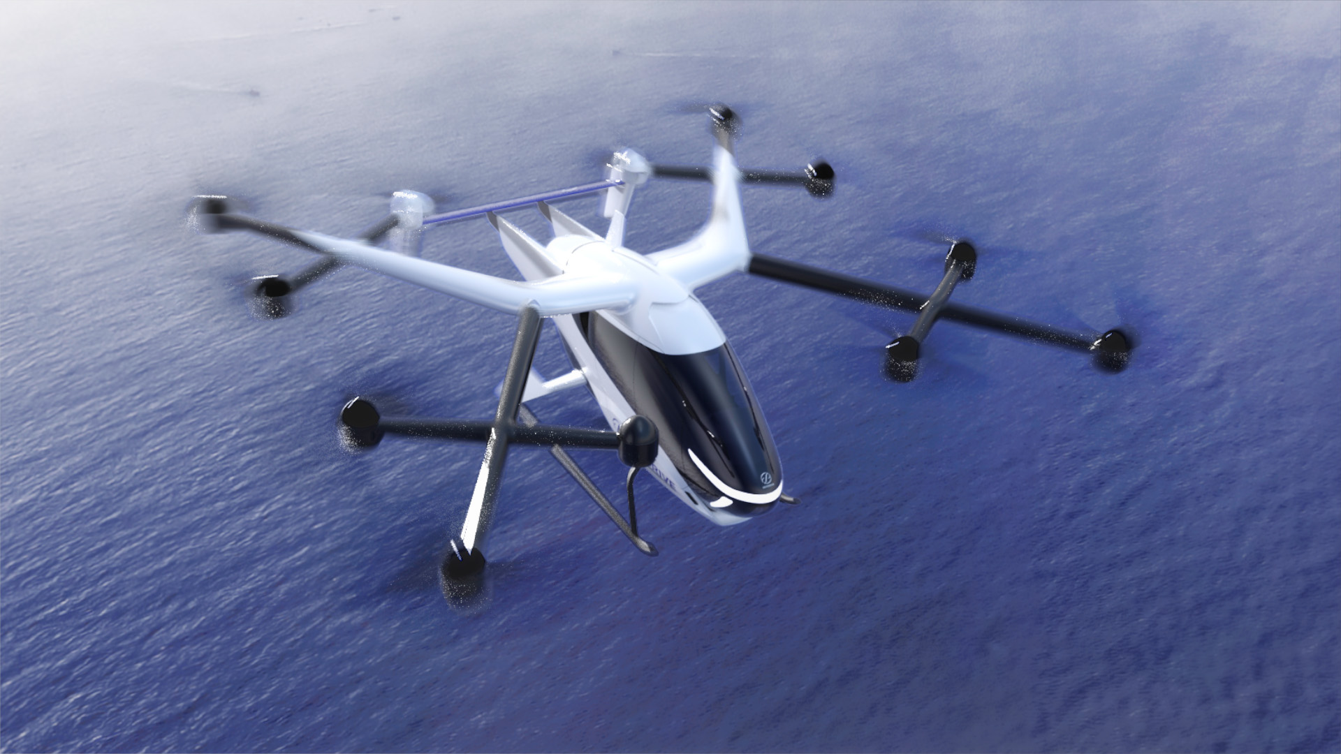 The aerodynamically advanced airframe design is informed by studies of the streamlined shapes of birds and animals, and features both horizontal and vertical tails for added stability in flight. At the top corners of the airframe, 12 motor-propeller units are positioned for flight stability. These reflect flight control technology acquired through more than 1,000 flight tests conducted during development of the airframe.